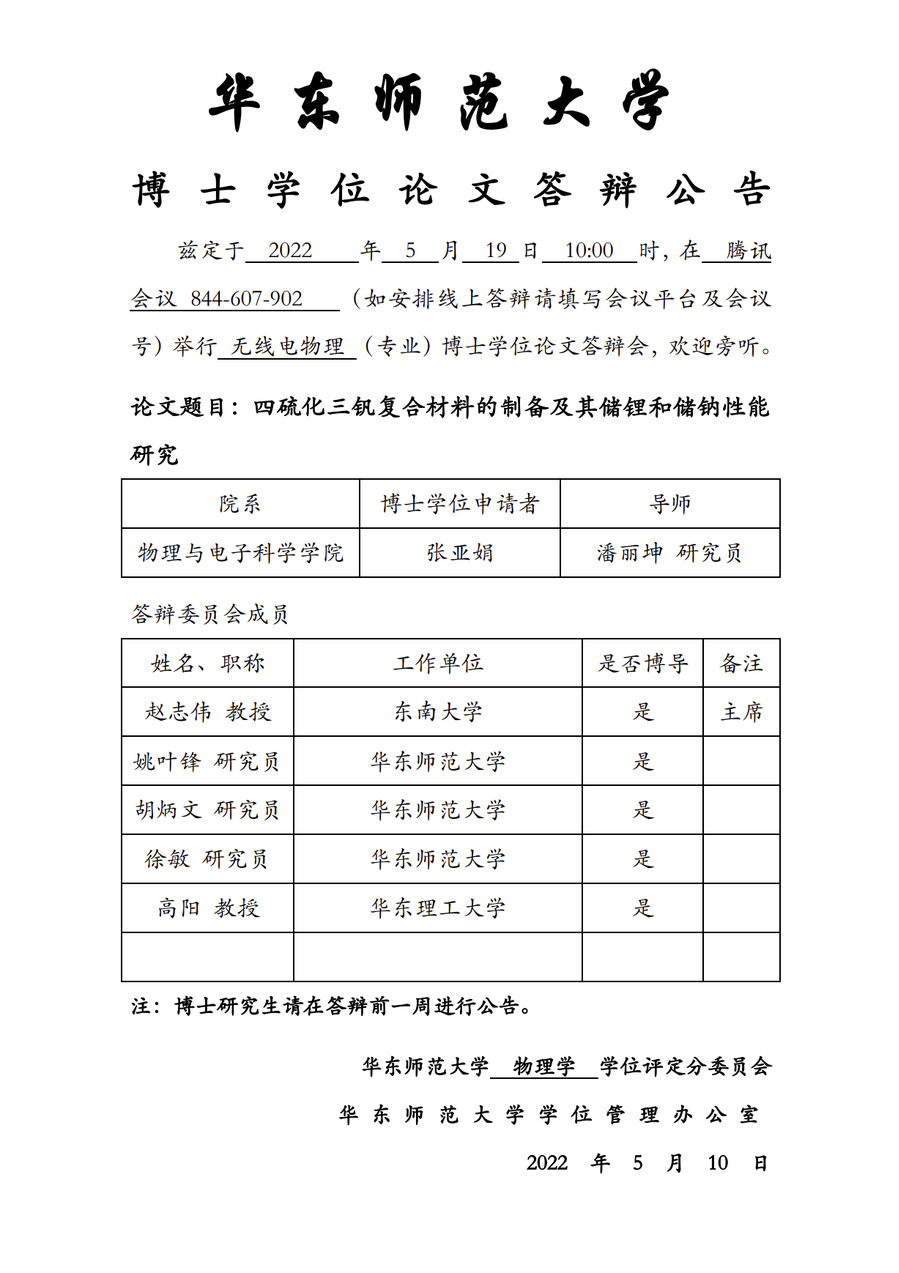 华东师范大学 博士学位论文答辩公告-张亚娟