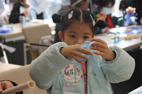 “追光”科普宣讲团的志愿者们为少儿组的小朋友带来了三个简单有趣的互动小实验。“静电章鱼”让小朋友感受到静电,塑料袋模拟“章鱼”悬浮在空中的魔力;“神奇的大泡泡”不仅带来了欢笑,还告诉了小朋友表面张力的作用;透过装满水的玻璃杯,小朋友们感知“光的折射”原理。